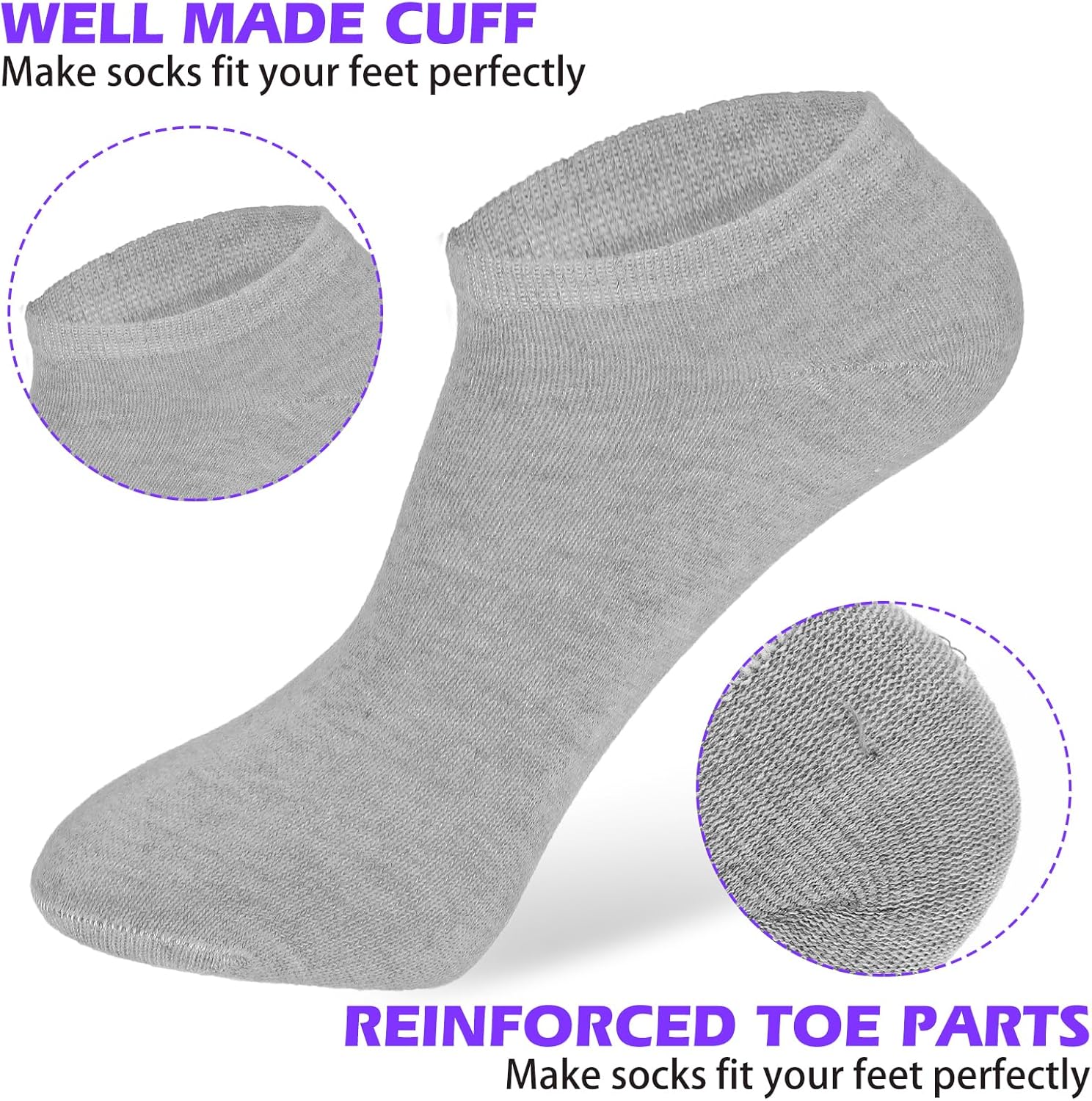 Discover the ultimate comfort with our bulk socks collection, featuring 60 pairs of men's ankle socks designed for everyday wear. Crafted from a high-quality cotton blend, these low cut ankle socks offer a soft and breathable experience, 60 pair of socks unisex are perfect for any occasion. Whether you're heading to the gym or lounging at home, these bulk ankle socks men provide a snug fit that conforms to your feet, ensuring maximum comfort. Available in classic colors of black, white, and grey, these medias negras hombre are versatile enough to match any outfit. The thin black sock design ensures a lightweight feel, ankle socks bulk unisex making them ideal for warmer months. With a sock bottom length of 18cm and a sock tube height of 4cm, these men's socks are tailored to fit most sizes comfortably. Each pack includes 20 pairs of black, 20 pairs of white, and 20 pairs of grey socks, offering a comprehensive solution for your sock needs. Perfect for sports, casual wear, or as a thoughtful gift, these ankle socks bulk unisex are a staple in every wardrobe.
